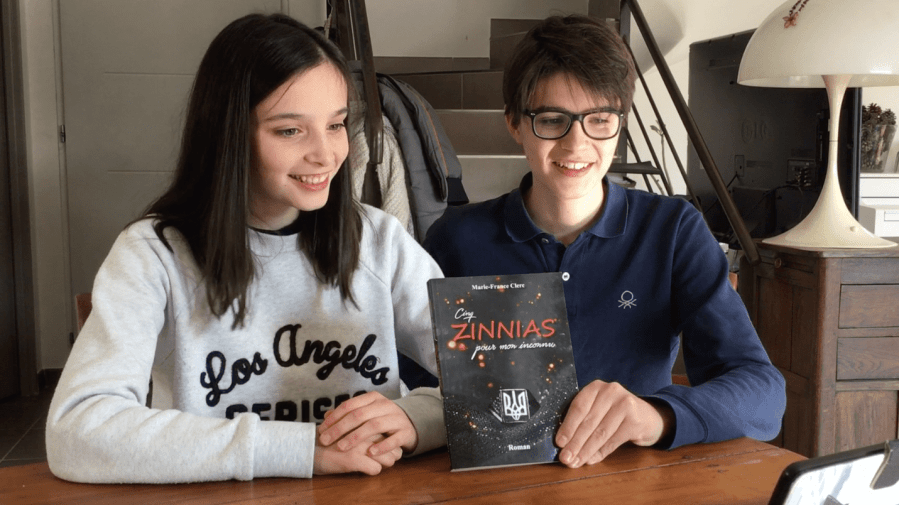 Thomas et Marie ont interrogé l’auteure de « Cinq Zinnias » par Skype (vidéo en français)
