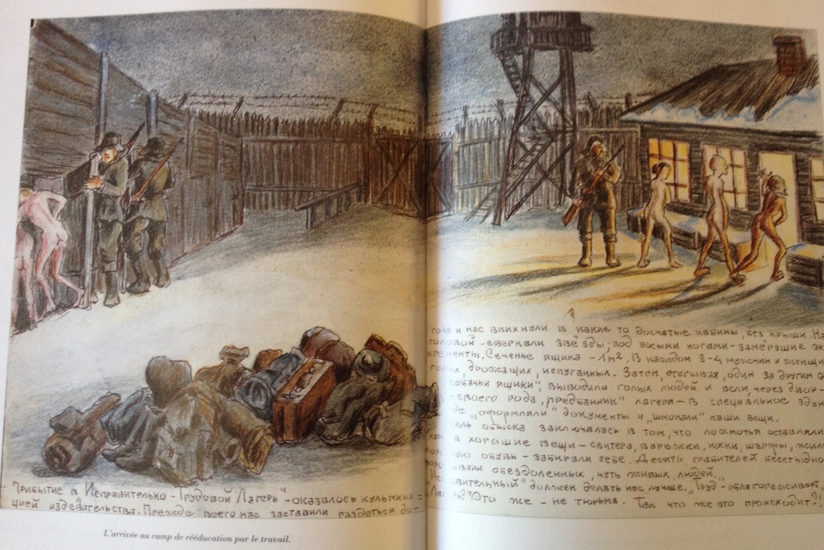 L’auteure est alors âgée d’une trentaine d’années. Dans les années soixante, après avoir survécu aux épreuves de la relégation, de la prison et des camps, puis, aux dangers des mines de charbon du Grand Nord où elle a travaillé comme haveuse après sa libération en 1952, Euphrosinia Kersnovskaïa entreprend de rédiger la chronique de ce qu’elle appelle ses « années d’apprentissage » : plus de mille cinq cents pages dactylographiées illustrées d’environ sept cents dessins aux crayons ou à l’aquarelle.